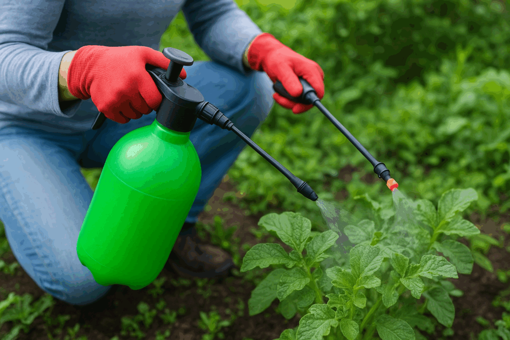 - Pritsimine: Prits tekitab peene udu, mis katab ühtlaselt taime lehtede ja varte pinna. See tagab, et toimeaine jõuab täpselt sinna, kus kahjurid või haigustekitajad pesitsevad. Just see ühtlane katvus on tõhusa tulemuse võti.