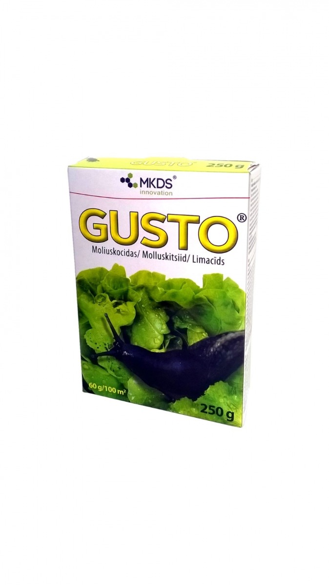 - Gusto® on granuleeritud peibutussööda preparaat, mis sisaldab toimeainena 30 g/kg metaldehüüdi.