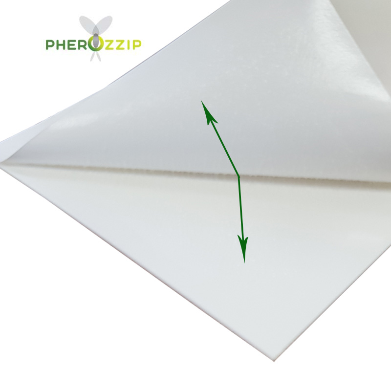 3. Eemaldage kleepuvalt vooderdiselt kaitseosa ja asetage selle keskele feromoonist sööt. 4. Asetage vooderdis koos feromooniga lõksu, fikseerige servad, et vooderdis lõksust välja ei kukuks.SOOVITUSED: